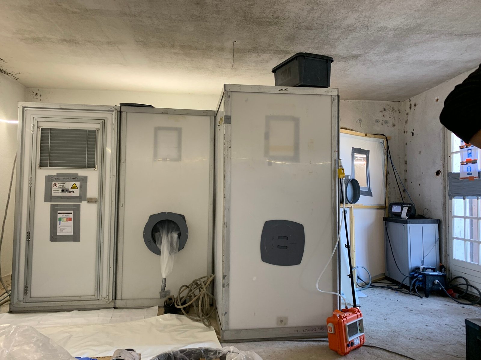 Mise en place des SAS nécessaires à la décontamination des opérateurs et à la gestion des déchets amiantés.
